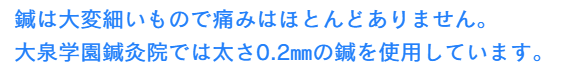 当院では痛くない治療。また少ない本数の刺鍼で効果を出す治療を心がけています。なるべく早く患者様に楽になっていただくために最善の治療を行います。